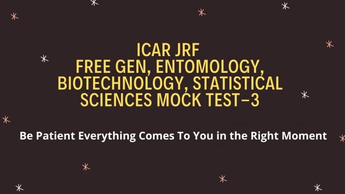 Free Gen, Entomology, Biotechnology, Statistical Sciences Mock Test-3 February 7, 2021 agriicarjrf Uncategorized 0 Free Gen Agri Mock Test-3- Click Here Entomology Mock Test-3-Click Here Plant Biotechnology Mock Test-3-Click Here Statistical Sciences Mock Test-3-Click Here