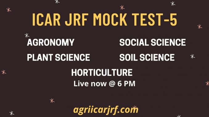 Agronomy, Horti, Plant Sci, Soil Sci & Social Sci Mock Test-5: Live February 28, 2021 agriicarjrf Uncategorized 0 Agronomy Mock Test-5-Click Here Plant Science Mock Test-5-Click Here Social Sciences Mock Test-5-Click Here Soil Science Mock Test-5-Click Here Horticulture Mock Test-5-Click Here