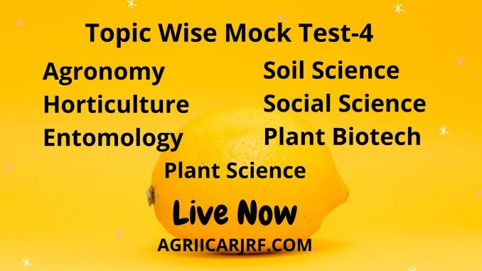 Topic Wise-ICAR JRF Mock Test- 4 $Live Now$ May 23, 2021 agriicarjrf Uncategorized 0 Topic Wise Mock Test- Plant Sci TW Mock Test-4 – Soil Sci TW MT-4- Social Sci TW MT-4- Agronomy Sci TW MT-4- Horticulture TW MT-4- Entomology TW Mock Test-4– Plant Biotechnology TW Mock Test-4-