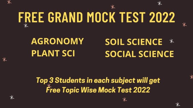 Free Grand Mock Test on Different Subjects @ 20th March 2022 March 20, 2022 agriicarjrf Uncategorized 1 Free Grand Agronomy Mock Test -1 – Free Grand Plant Sci Mock Test -1 – Free Grand Social Sci Mock Test -1 – Free Grand Soil Sci Mock Test -1 –